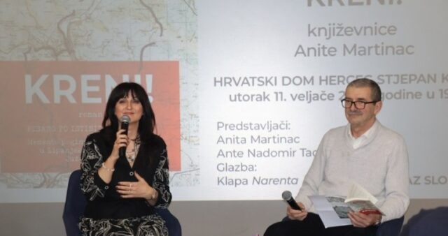 Književnica Anita Martinac, članica HKD Napredak Glavna podružnica Mostar, predstavila je u srijedu u Hrvatskom domu hercega Stjepana Kosače u Galeriji kraljice Katarine Kosača svoj novi roman Kreni! koji je podsjetnik na vrijednosti Domovinskog rata.