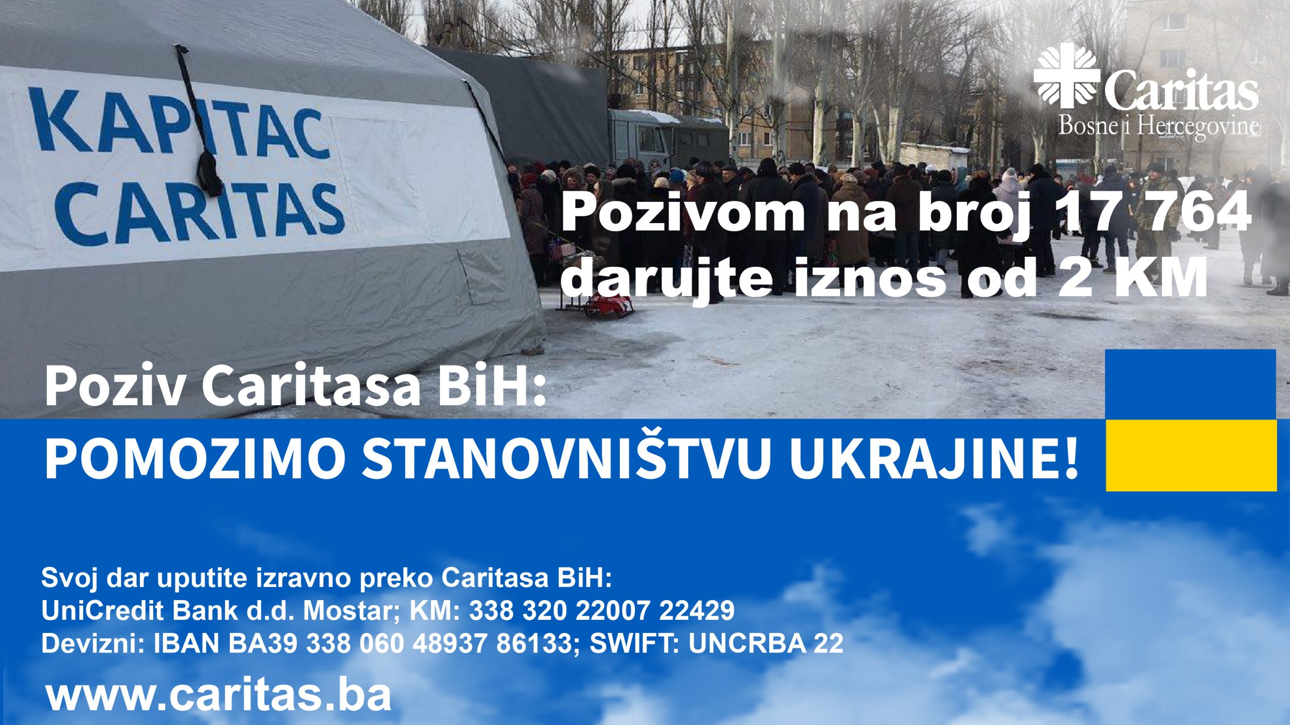 Nadaleko je poznata širina srca i darežljivost bosanskohercegovačkog čovjeka, a koja i danas poziva i potiče sve nas na nesebično darivanje i pružanje konkretne pomoći stanovništvu ratom zahvaćene Ukrajine. Tijekom minulih desetljeća, posebno tijekom rata pa sve do današnjeg dana, svi smo osjetili što je Caritas učinio u našoj ovozemaljskoj domovini Bosni i Hercegovini, bez obzira na našu vjersku i nacionalnu pripadnost. Imajmo povjerenje u Caritas i pomozimo bližnjega u nevolji u ratom zahvaćenoj Ukrajini.