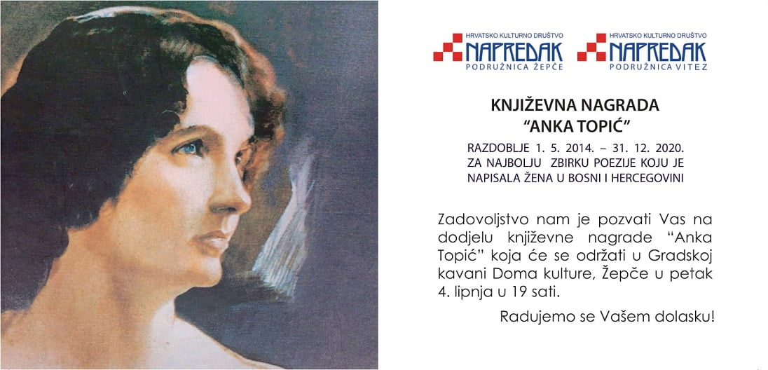 HKD Napredak Žepče i HKD Napredak Vitez organiziraju sutra navečer svečanu dodjelu književne nagrade “Anka Topić” u Domu kulture u Žepču.