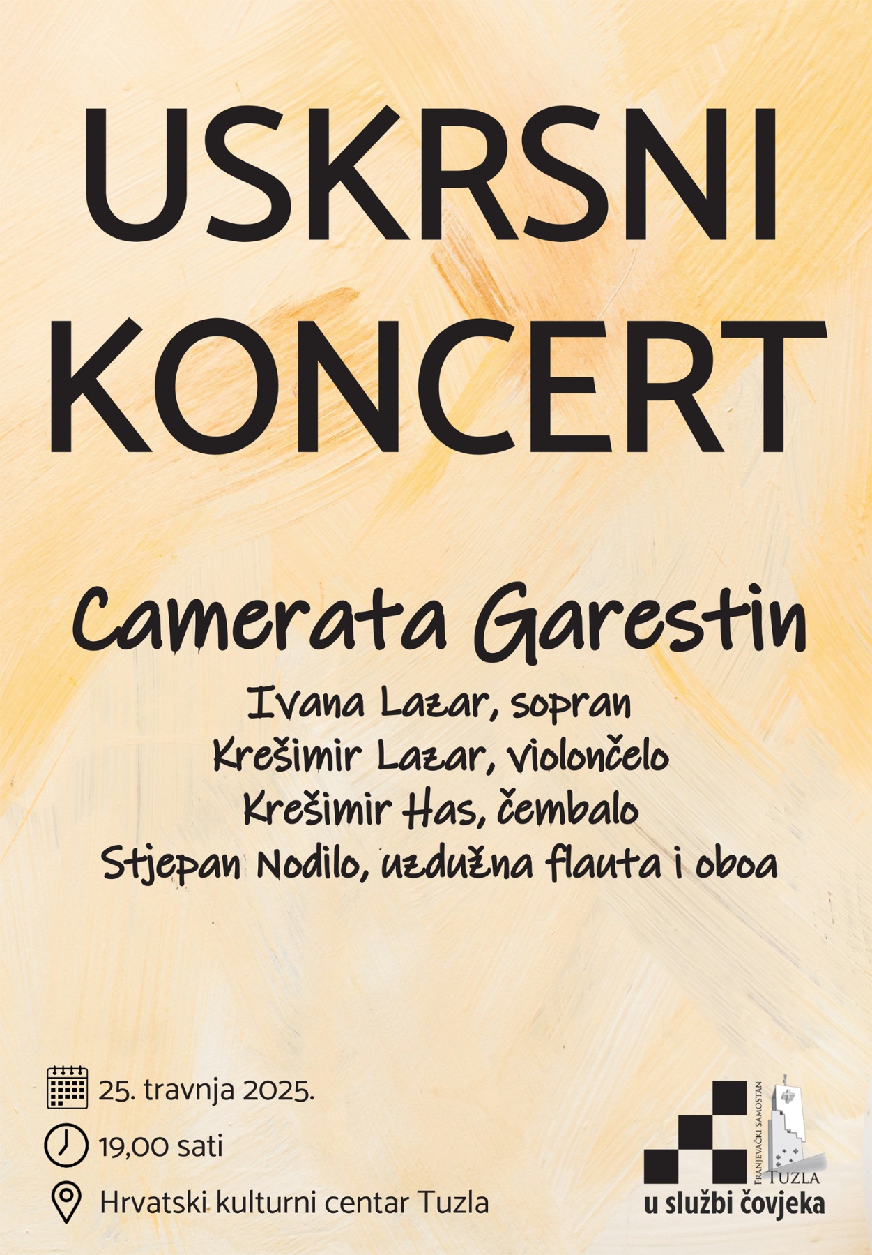 Na koncertu nastupa renomirani ansambl Camerata Garestin, koji će izvesti birani program klasične glazbe u duhu Uskrsa, uz sudjelovanje Ivane Lazar, sopran, Krešimira Lazara na violončelu, Krešimira Hasa na čembalu, te Stjepana Nodila na uzdužnoj flauti i oboi.