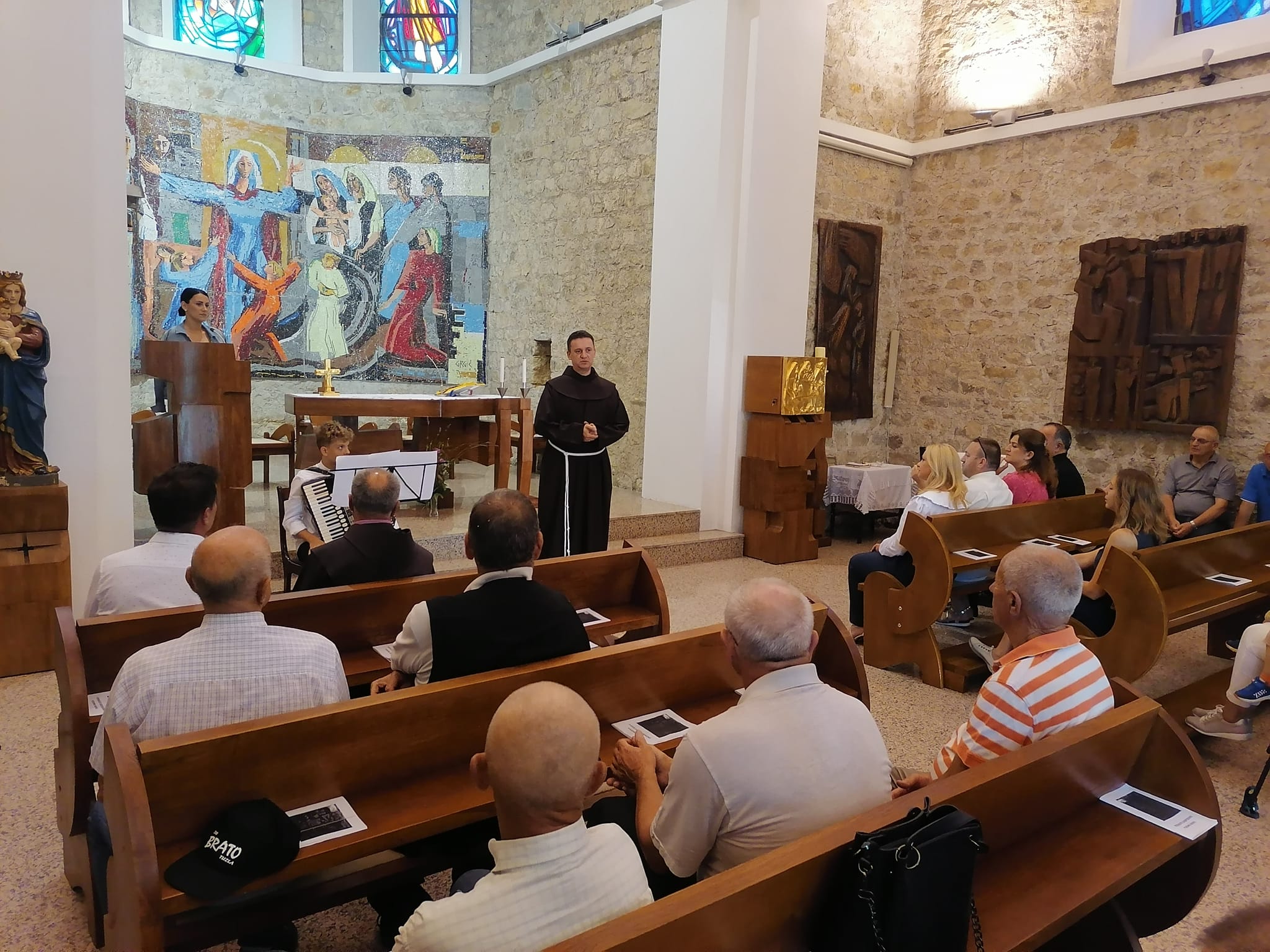 U prepunoj crkvi sinoć domaćini su poželjeli dobrodošlicu umjetnicima ali i poručili svim nazočnima da se u narednim danima odvaže posjetiti umjetnike u župnom dvorištu.