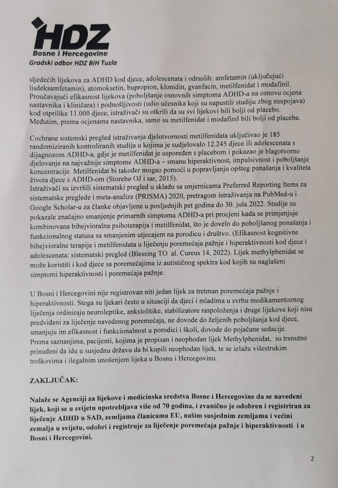 “Methylphenidat je lijek koji se najčešće propisuje djeci i adolescentima s ADHD-om, kao i osobama koje boluju od autističnog spektra sa simptomima hiperaktivnosti, koji se u svijetu upotrebljava više od 70 godina i zvanično je odobren i registriran za liječenje ADHD u SAD, zemljama članicama EU, našim susjednim zemljama i većini zemalja u svijetu, ali pacijentima u Bosni i Hercegovini nije dostupan, jer nije registriran pri Agenciji za lijekove i medicinska sredstva Bosne i Hercegovine”, podsjeća Kovačević i navodi da i ovi podaci dovoljno govore koliko je lijek važan.