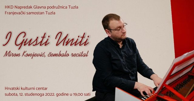 U subotu 12. listopada s početkom u 19,00 sati u Hrvatskom kulturnom centru “Sveti Franjo” bit će upriličen koncert klasične glazbe “I Gusti Uniti” glazbenika Mirona Konjevića, a u organizaciji HKD Napredak Glavna podružnica Tuzla i Franjevačkog samostana u Tuzli.