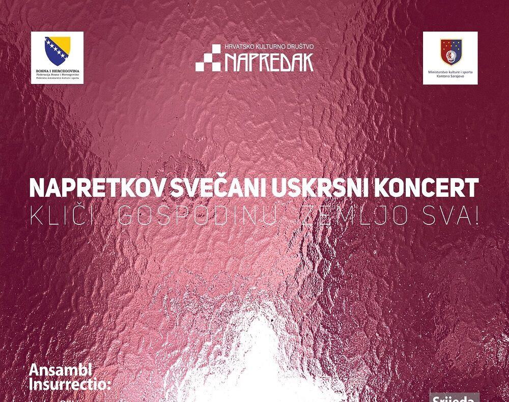 Poštujući tradiciju održavanja uskrsnih programa, Hrvatsko kulturno društvo Napredak u prigodi najvećeg kršćanskog blagdana Uskrsa, organizira svoj tradicionalni Svečani uskrsni koncert “Kliči Gospodinu, zemljo sva!” koji će sarajevskoj, ali i široj publici biti prezentiran u impresivnoj katedrali Srca Isusova u Sarajevu u srijedu 12. travnja 2023. godine s početkom u 19,30 sati.