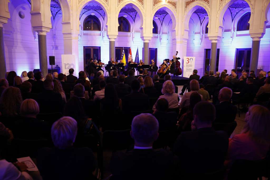 Koncert Zagrebačkih solista upriličen je večeras u sarajevskoj Vijećnici u povodu 120 godina Hrvatskog kulturnog društva (HKD) Napredak i 30 godina od konstituiranja prvog višestranačkog Sabora u Hrvatskoj što se slavi kao dan državnosti Republike Hrvatske.