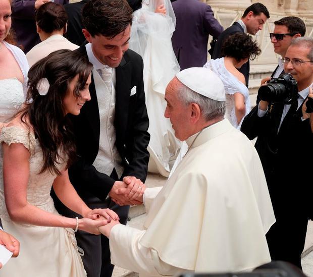 Neka sveti Josip u svim obiteljima probudi stvaralačku hrabrost, koja nam je toliko potrebna u ovom dobu epohalnih promjena koju trenutno proživljavamo. Neka vas Majka Božja prati u vašem braku u stvaranju “kulture susreta” koja nam je tako hitno potrebna u suočavanju s protivštinama i nedaćama koje naše vrijeme zavijaju u crno. Nikakva teškoća ne može oduzeti radost onima koji znaju da je Gospodin uz njih na njihovu putu. Živite svoj poziv s entuzijazmom. Nikada nemojte dopustiti da vam lica postanu tužna ili sumorna. Vaš muž ili žena trebaju vaš osmijeh. Vaša djeca trebaju vaš pogled ohrabrenja. Vaši pastiri i druge obitelji trebaju vašu prisutnost i vašu radost: radost koja dolazi od Gospodina!