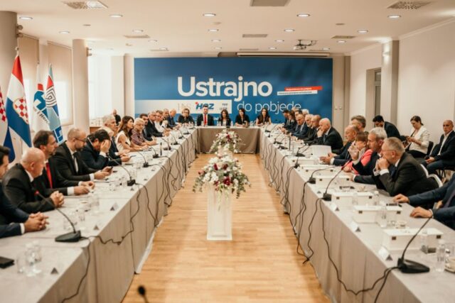 Plenković, ujedno predsjednik Hrvatske demokratske zajednice (HDZ), u Mostaru vodi izaslanstvo koje se susrelo sa sestrinskom strankom HDZ BiH povodom 35 godina od osnutka.