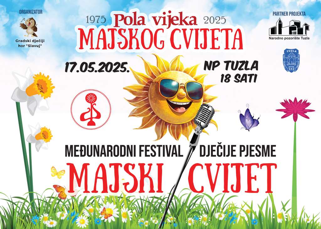 U Narodnom pozorištu Tuzla u subotu, 17. svibnja bit će održan Međunarodni festival dječje pjesme ‘Majski cvijet’. Ovogodišnji festival okupit će autore i izvođače iz Bosne i Hercegovine, Hrvatske, Srbije, Crne Gore, Slovenije, Njemačke, Švedske i USA, a publika će imati priliku čuti 15 odabranih natjecateljskih pjesama.