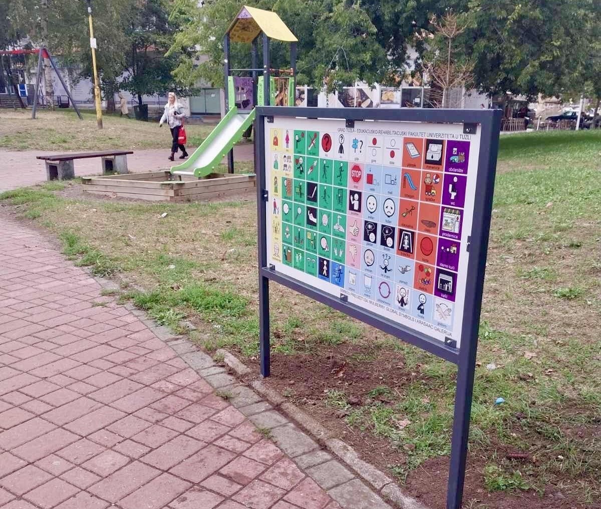 Služba za komunalne poslove, izgradnju i poslove mjesnih zajednica Grada Tuzle, u suradnji s Edukacijsko-rehabilitacijskim fakultetom Univerziteta u Tuzli te Upravnom organizacijom Zavod za urbanizam Grada Tuzle, izvršio je pripreme na izradi i postavljanje komunikacijskih ploča za djecu i odrasle sa smetnjama u govoru.
