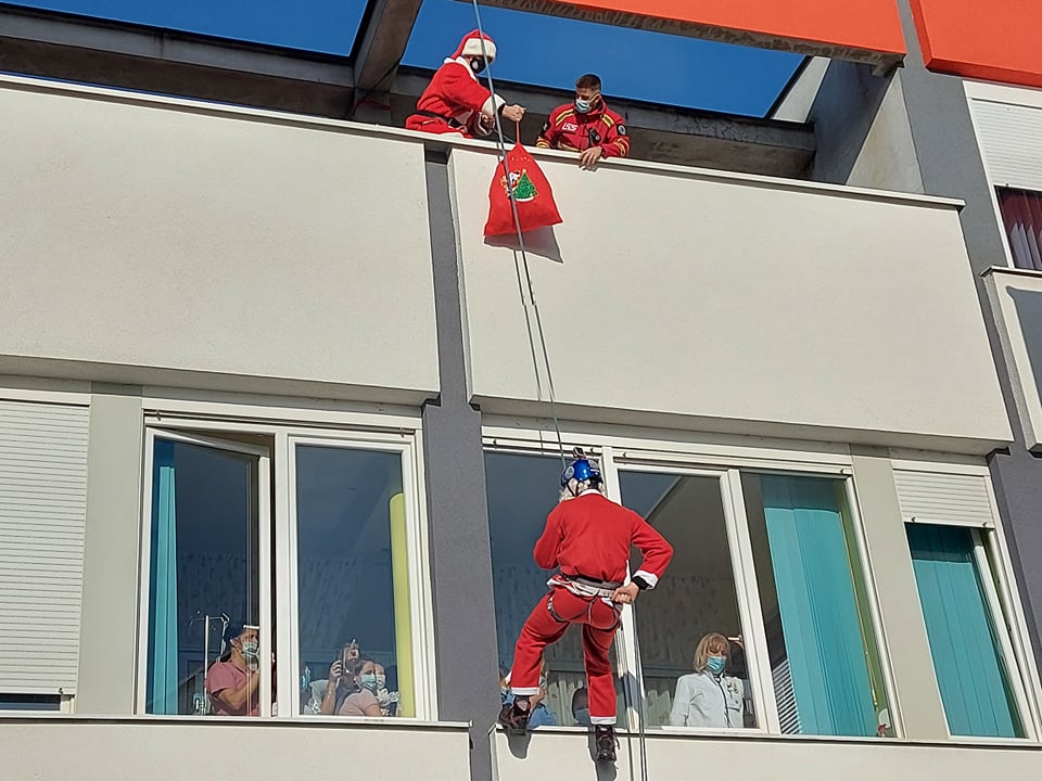 Šestogodišnji Faris upravo je izašao iz COVID odjeljenja Klinike za dječije bolesti UKC-a Tuzla. Zdrav odlazi kući, a uspio je upoznati i Djeda Mraza. Kaže da je sretan, jer je dobio paketić, a za novu godinu poželio je bilo koju igračku. Njega i njegove drugare i drugarice iz bolnice članovi Interventne službe spašavanja Živinice obradovali su silazeći niz zidove i kroz prozor im dodajući paketiće. Prethodni su tjedan svojim redovitim vježbama dodali i one na vanjskim zidovima Klinike za dječije bolesti Tuzla sa samo jednim ciljem – navući osmijeh na dječija lica.