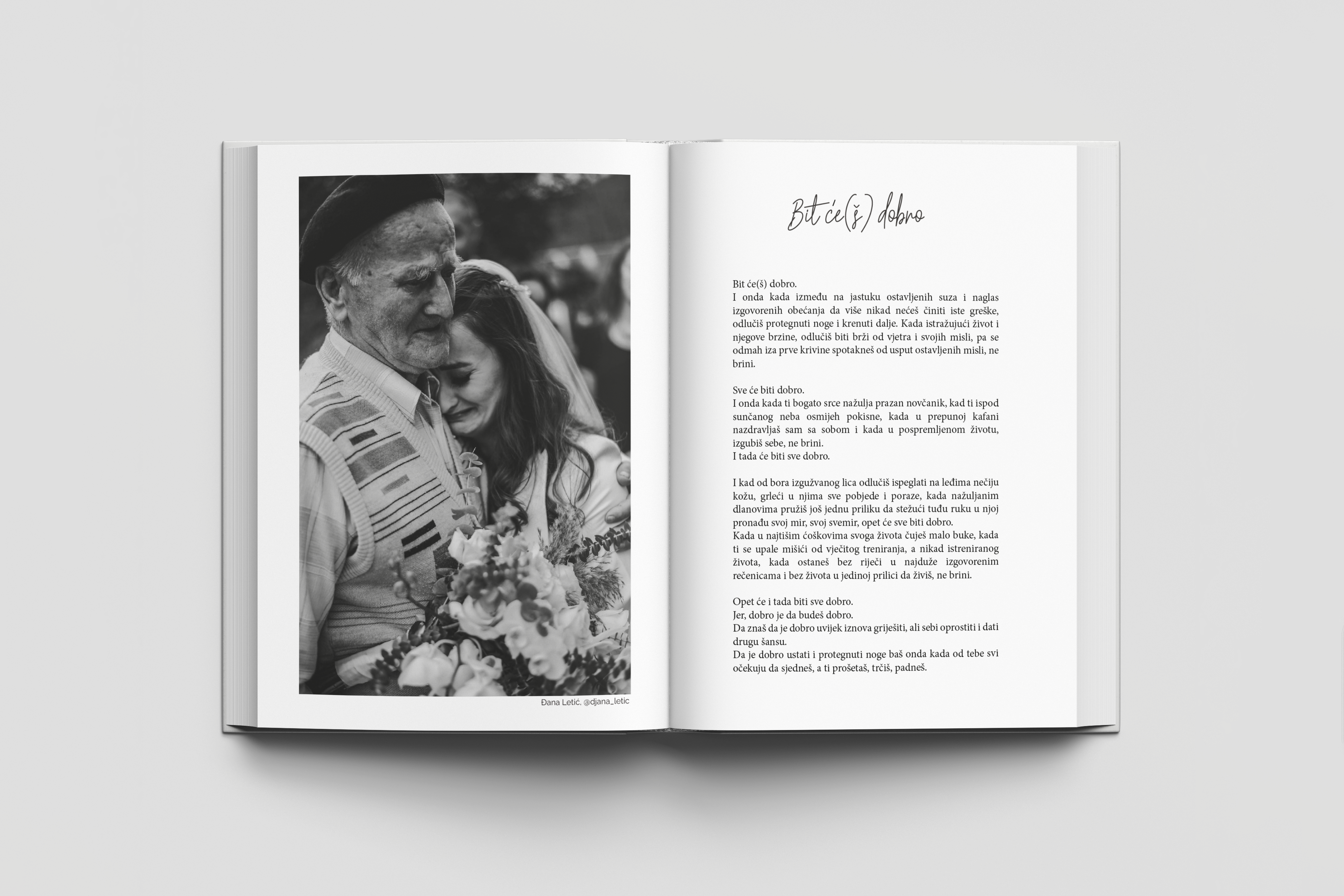 HG: Knjiga je predivna i po svom izgledu i po svom sadržaju. Unutar nje nalaze se zaista duboke misli koje prate odlične fotografije. Odakle sve to dolazi? Ta inspiracija i potreba da što pobliže čitateljima dočaraš svoje misli i emocije?