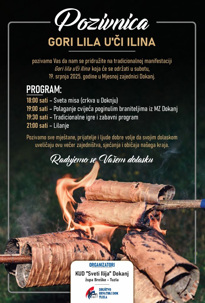 Kulturno-umjetničko društvo “Sveti Ilija” Dokanj i Župa Breške Tuzla organiziraju tradicionalnu proslavu Ilina, jednog od najvažnijih običaja ovog kraja, koji će biti obilježen 19. srpnja  u Doknju.
