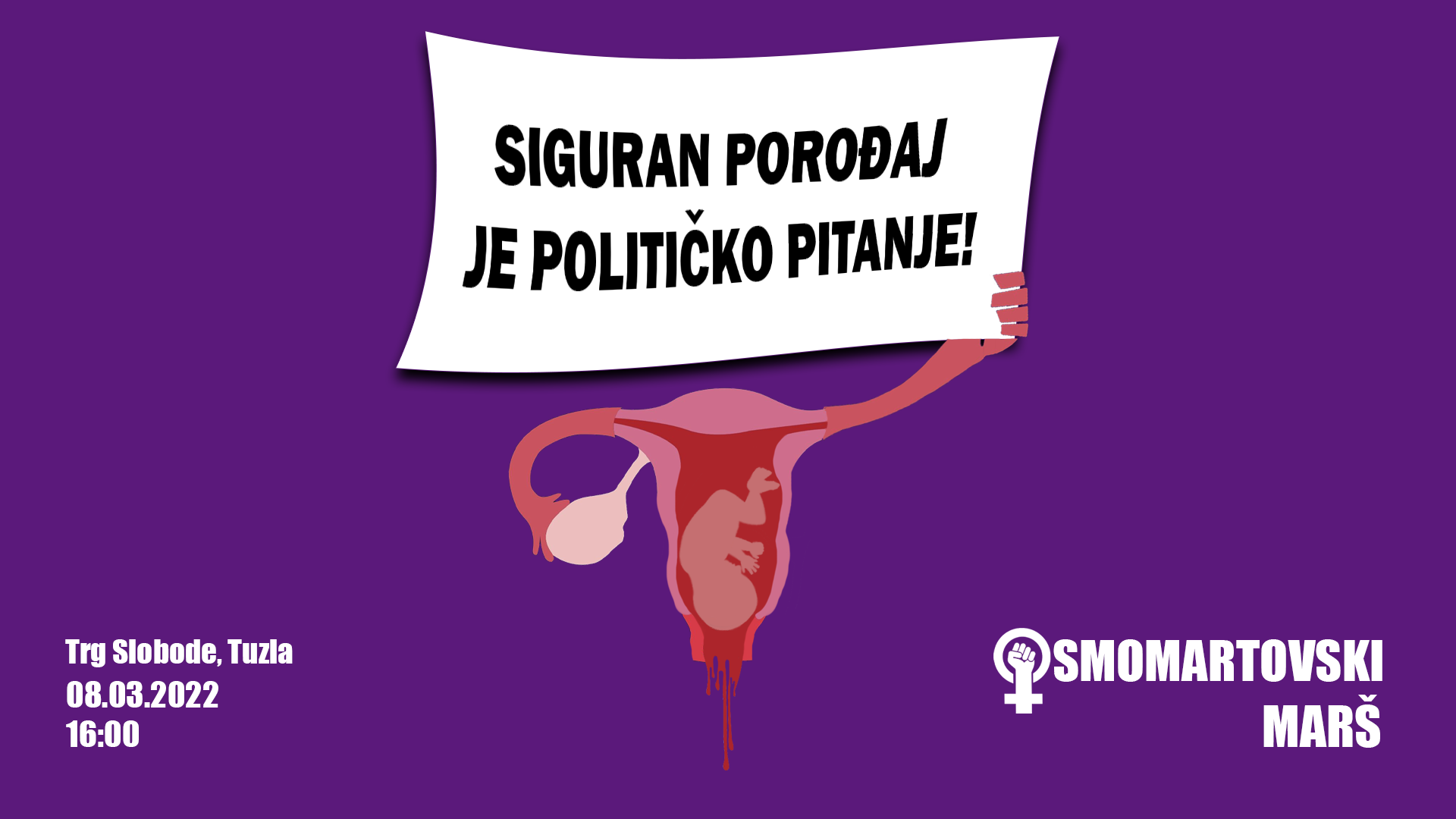 “Pozivamo sve djevojke, momke, žene, muškace, mame i tate da nam se 8. marta pridružite na Maršu koju počinje u 16.00 sati na Trgu Slobode u Tuzli, te se završava na platou Ismeta i Meše, Korzo u Tuzli, sa čitanjem iskustava žena koje su doživjele porodiljno nasilje i prikupljanjem higijenskih sredstava za porođajno odjeljenje Univerzitetskog Kliničkog Centra Tuzla. Maršem želimo ukazati na nasilje koje žene doživljavaju tijekom trudnoće, pri samom porodu, ali i nakon poroda. Veliki je broj žena koje su sa nama podijelile svoja iskustva iz porodilišta širom BiH, a mnoge od njih su doživljavale različite vrste diskriminacije i nasilja u medicinskim ustanovama, od strane zdravstvenog osoblja, te je porođaj za njih bio traumatično iskustvo”, ističu organizatori.