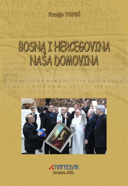 Predstavljanje nove knjige počasnog predsjednika HKD Napredak i PEU BiH mons. prof. dr. Franje Topića pod nazivom “Bosna i Hercegovina naša domovina” bit će upriličeno u četvrtak, 9. prosinca 2021. godine s početkom u 18 sati u prostoru Bosanskog kulturnog centra, Branilaca Sarajeva 24, Sarajevo.