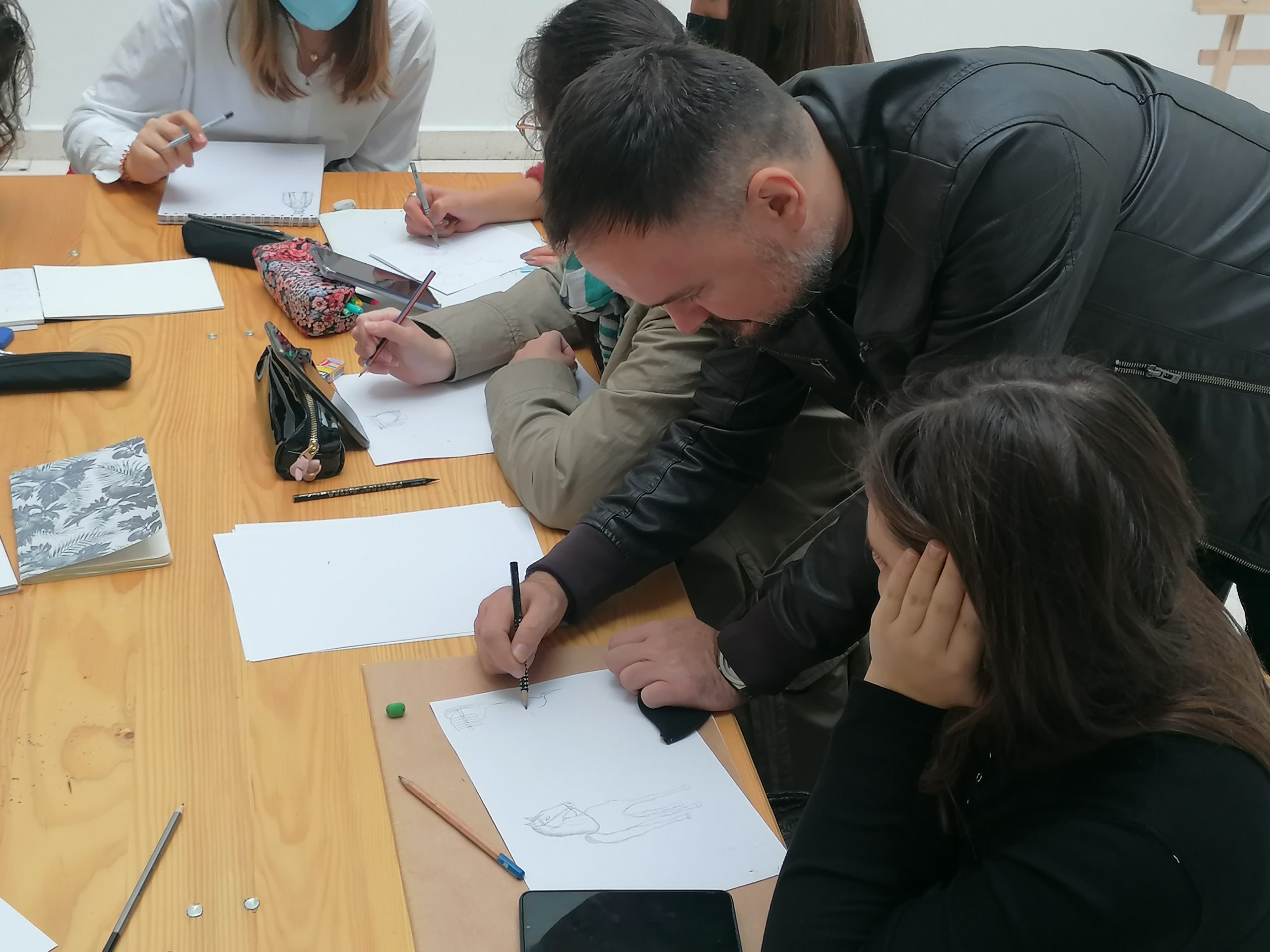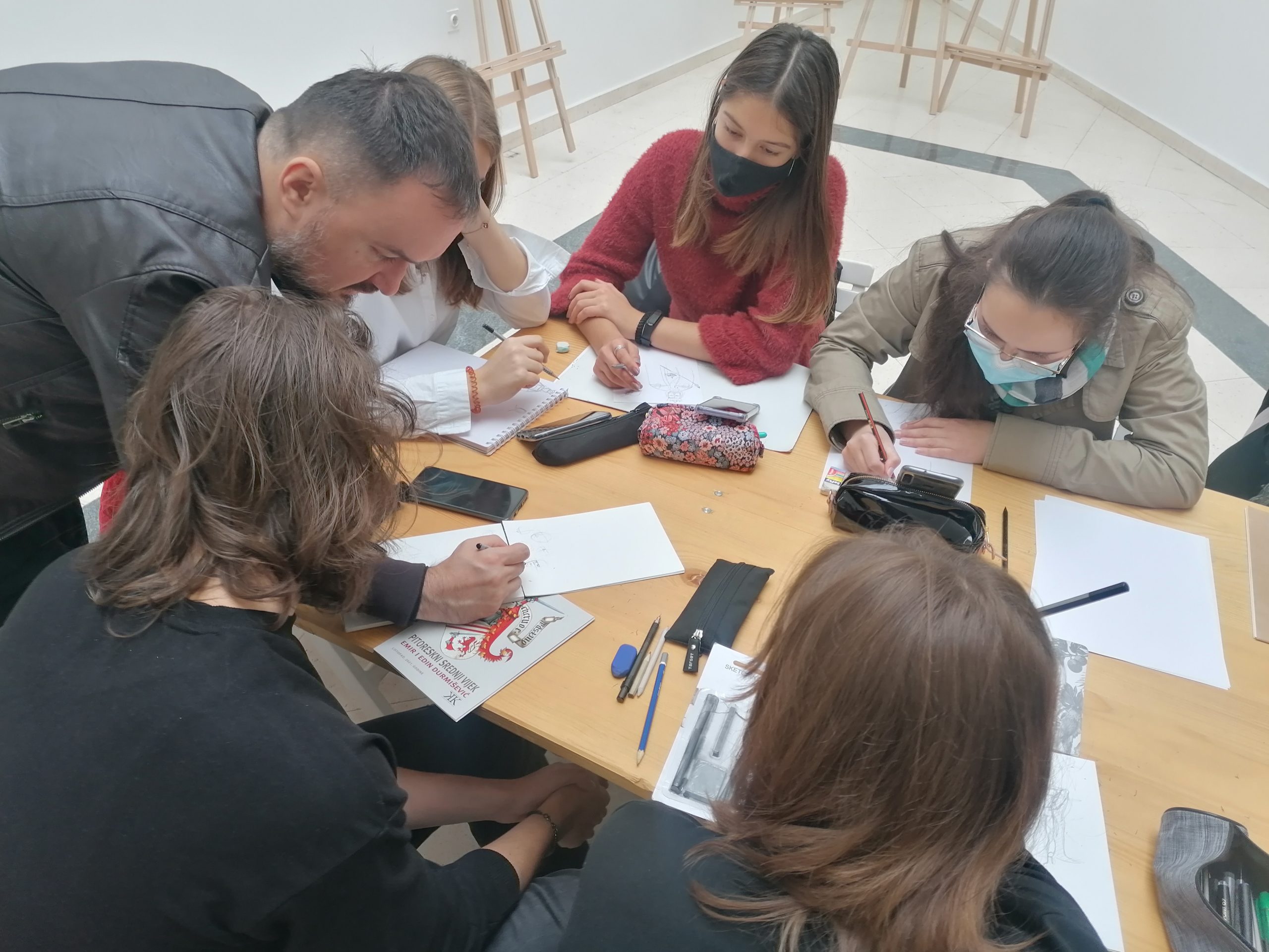 Učenici srednje Građevinsko – geodetske škole zajedno sa učenicima KŠC Sv. Franjo i gimnazije “Meša Selimović” imali su priliku ući u svijet ilustracija i grafičkog dizajina kroz predavanja umjetnika Durmiševića, ali i prikazati svoj talenat kroz rad na ilustracijama.