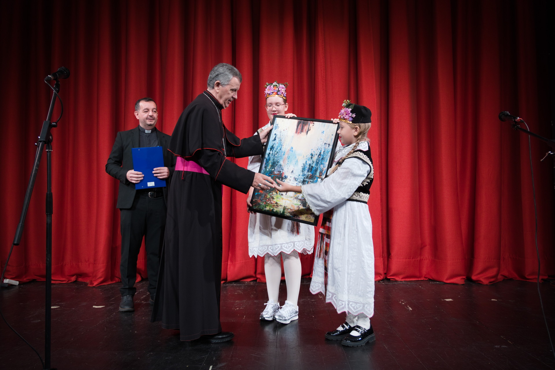 Tijekom svečane akademije u Narodnom pozorištu Tuzla, nadbiskupu Vukšiću uručen je i dar, umjetnička slika s Međunarodne likovne kolonije Breške.