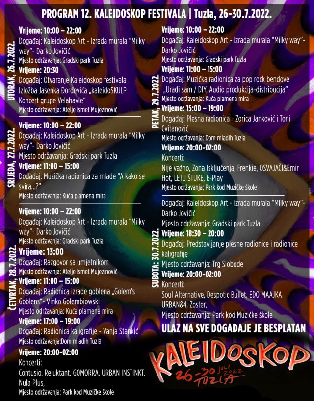 Dvanaesti Međunarodni festival umjetnosti mladih Kaleidoskop za petak, 29. srpnja je pripremio raznovrstan i zanimljiv program koji će se odvijati na nekoliko lokacija u gradu.
